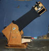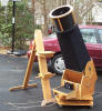 It is made from red oak that I had left over from my eq platform and observing chair projects. The left and right braces are actually the leftovers from the 1/2 x 6 stock that I cut the north sector on my eq platform from. That's why the bottoms are curved. The shelf itself is 1x12x12 solid red oak. I put a rim around the outside with 1/4 x 2 inch red oak. I used some 1/8 x 1/2 stainless steel stock to make the hangers. My goal was to have it removable and not leave any evidence that it was there.